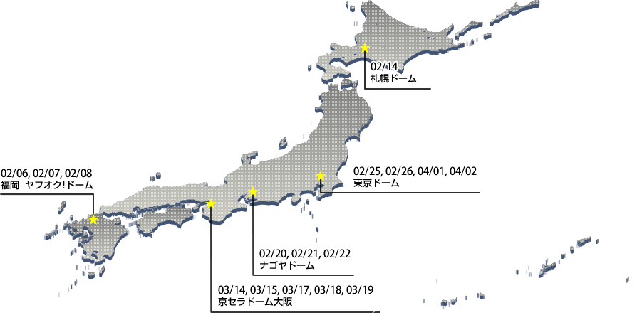 京セラドーム大阪 京セラドーム大阪 京セラドーム大阪 京セラドーム大阪 京セラドーム大阪 札幌ドーム 02/14 東京ドーム 東京ドーム 東京ドーム 東京ドーム ナゴヤドーム ナゴヤドーム ナゴヤドーム 福岡ヤフオクドーム 福岡ヤフオクドーム 福岡ヤフオクドーム